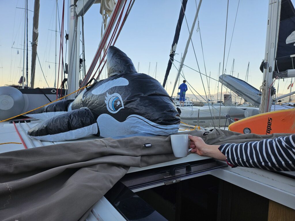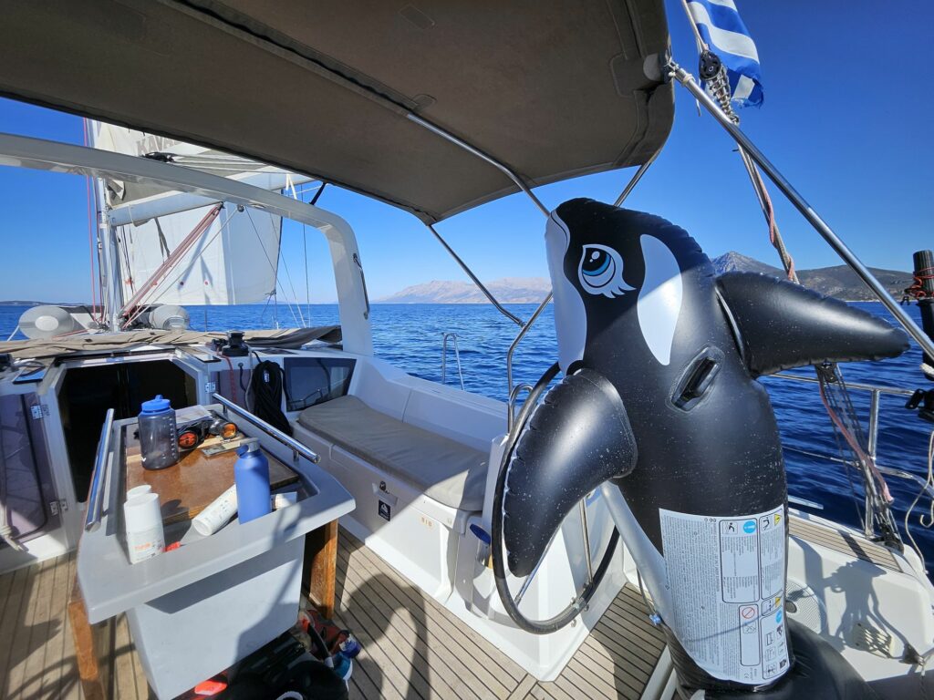 There have been stories of Orcas attacking yachts so we keep him on a lead so he doesn’t worry anybody.