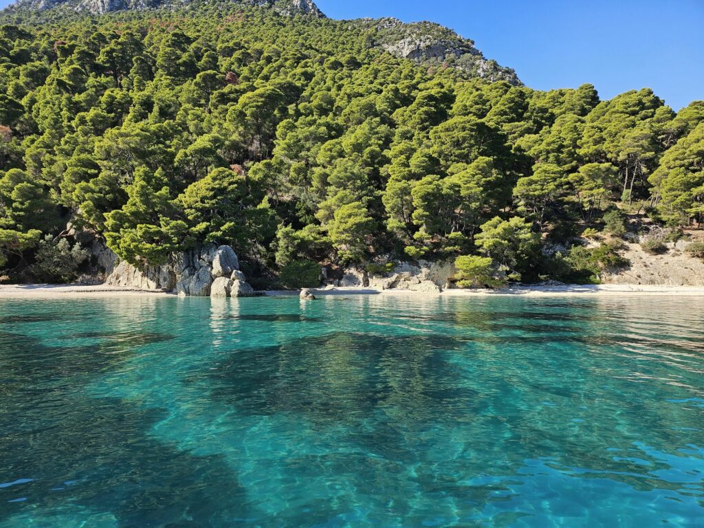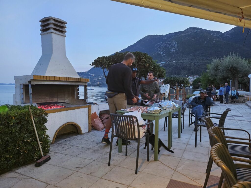 This is the end of the season so there are no Tavernas open. This problem is solved by the flotilla company organising a beach BBQ.