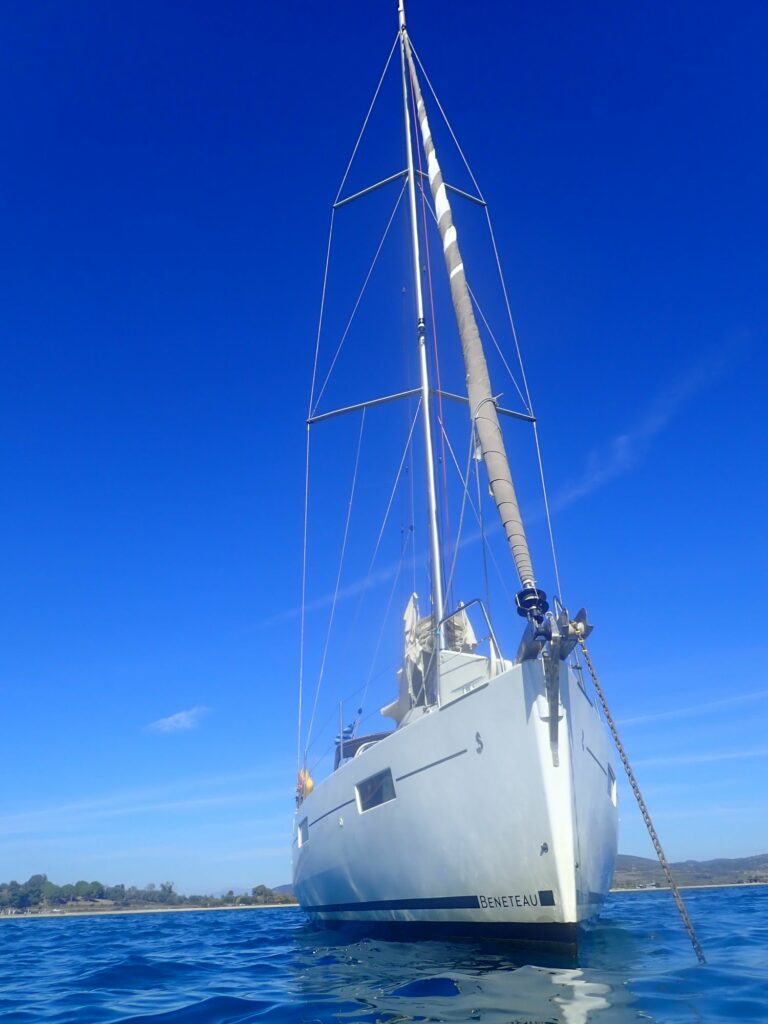 The crew head off to the beach while the skipper waits for the charter company to come and check the boat over.