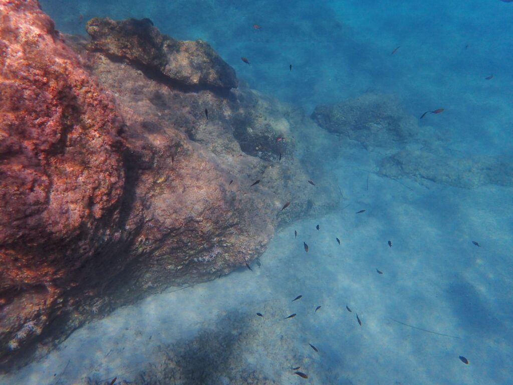 We went snorkeling and saw loads of tiny fish and some big ones.