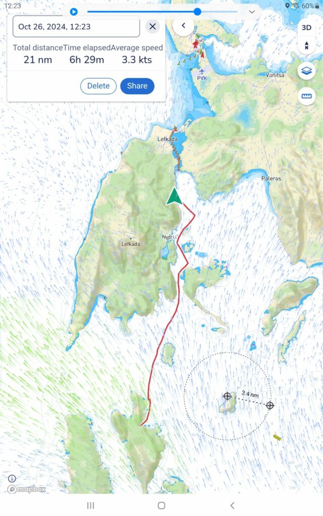 Finally some breeze in the afternoon for a bit of a sail before heading into Paleros for the night. No Karaoke bar this time, the owner of a restaurant that is perhaps 5 minutes walk came to meet arriving boats and tell us about his free showers and wide range of vegan options so he got our business a bit later.