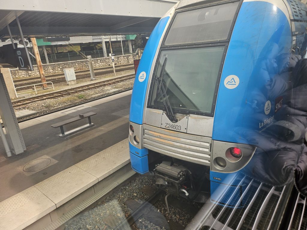 Sadly the normal TER trains have neither luggage racks or allocated seating so everyone ended up pretty much mixed in with their bags