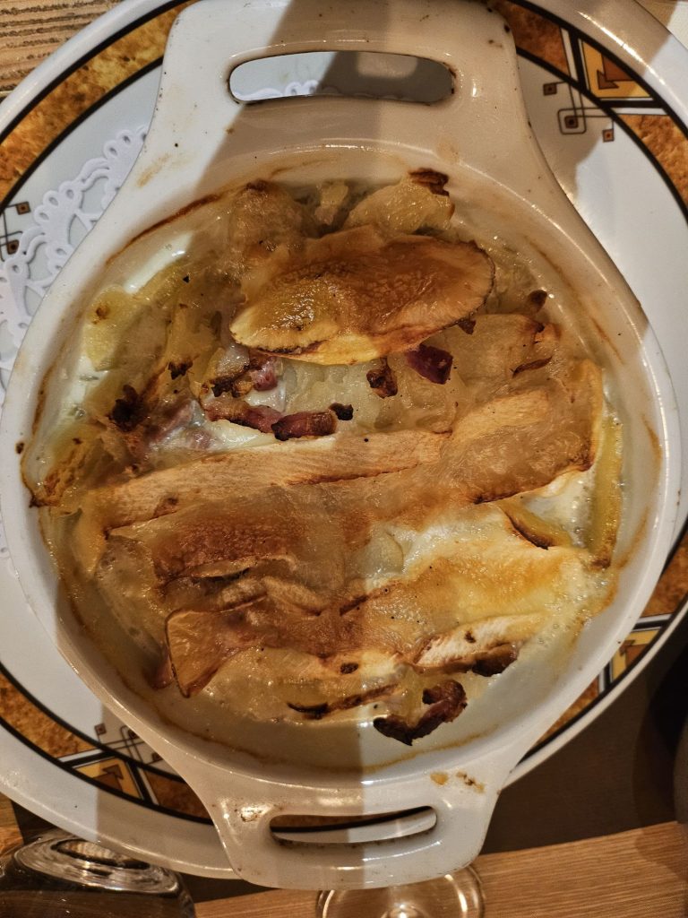 My watch is suggesting I burned 3000 calories covering 60km in 6 hours…. I wonder how many calories are in a large Tartiflette?