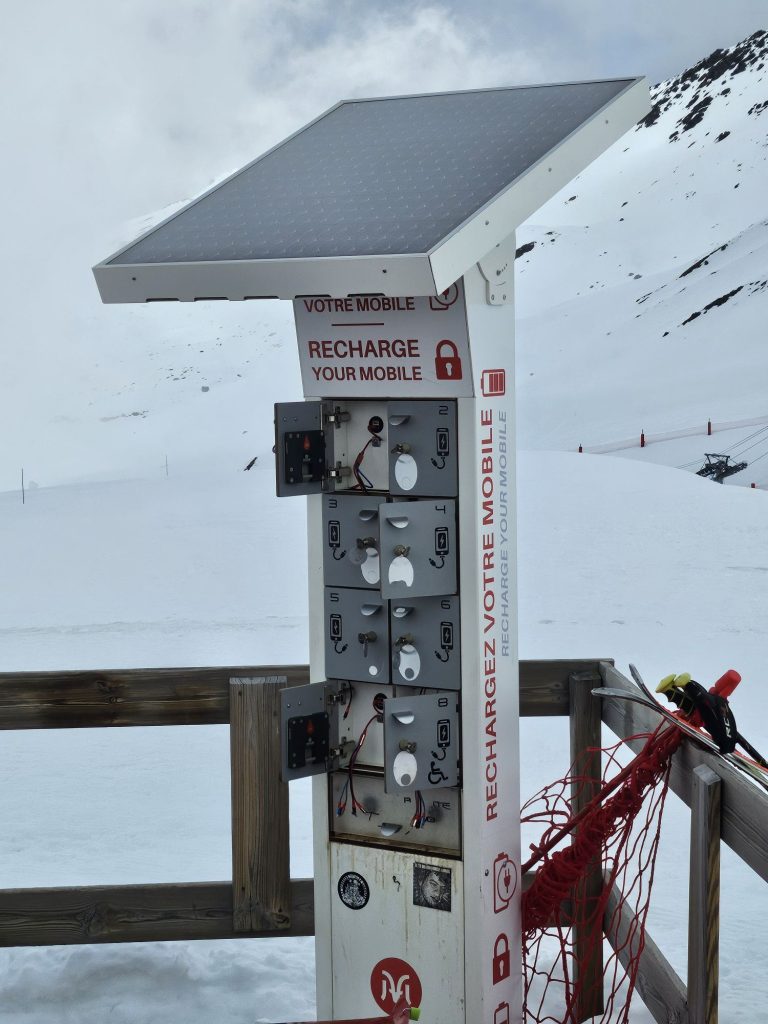 Lunch at a thoroughly over engineered picnic spot in Les Menuires with solar phone charging.