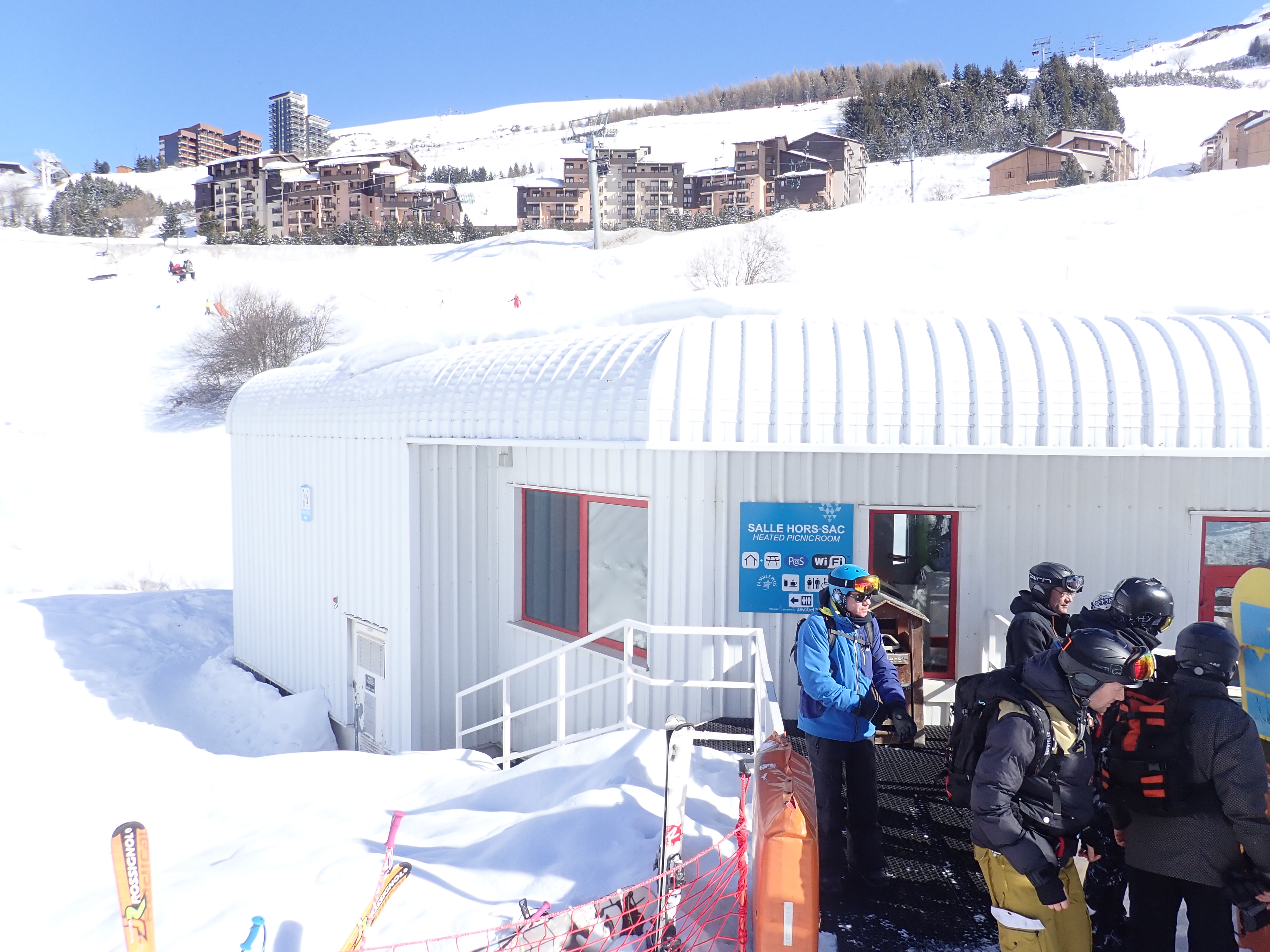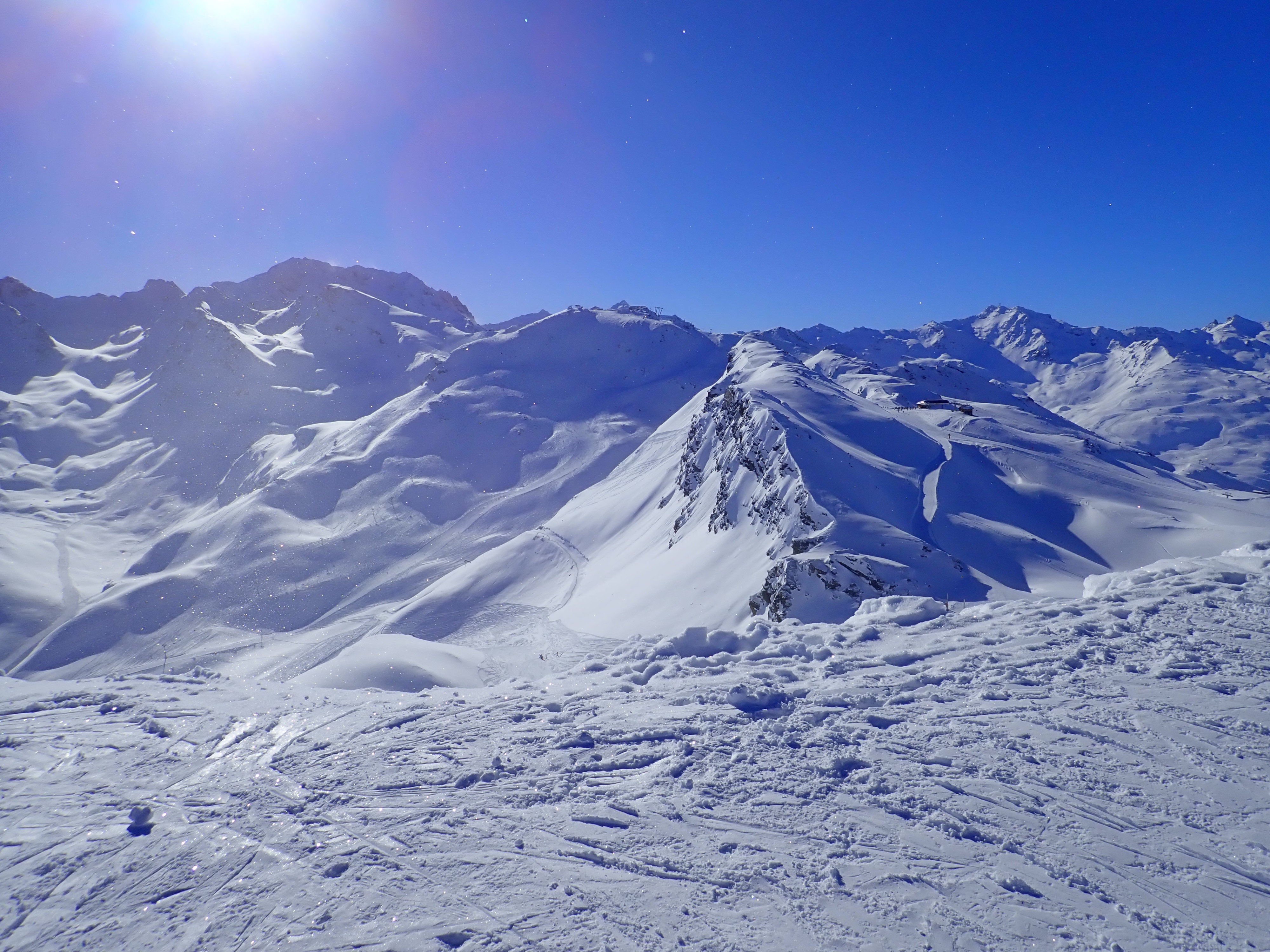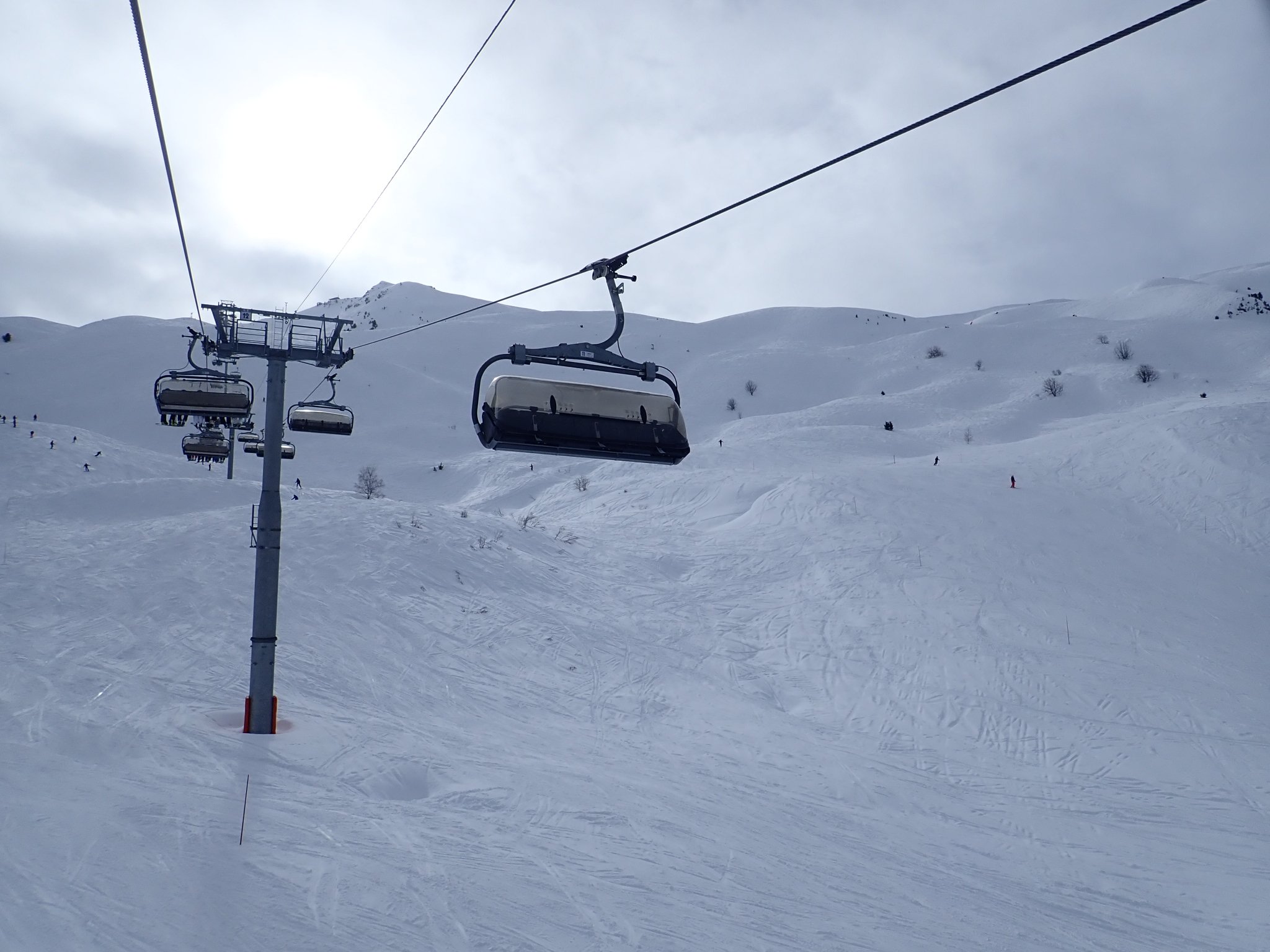 The weather got truly horrid in the afternoon, I guess this is a risk with a resort so high but you literally could not see from one piste marker to the next, you just guess and hope another pole of the correct colour appears. We could hear the distant sound of this cafe long before we could see it. We waited for a relatively clear spell with some coffee before heading down, deciding that there was no need to reduce the cost per crash further, and an early stop would be wise as the forecast for the next two days is good. Of course, the sun comes out the instant we reach the apartment, but there were still plenty of clouds so we stuck to the plan and sat on the balcony with a cup of coffee.