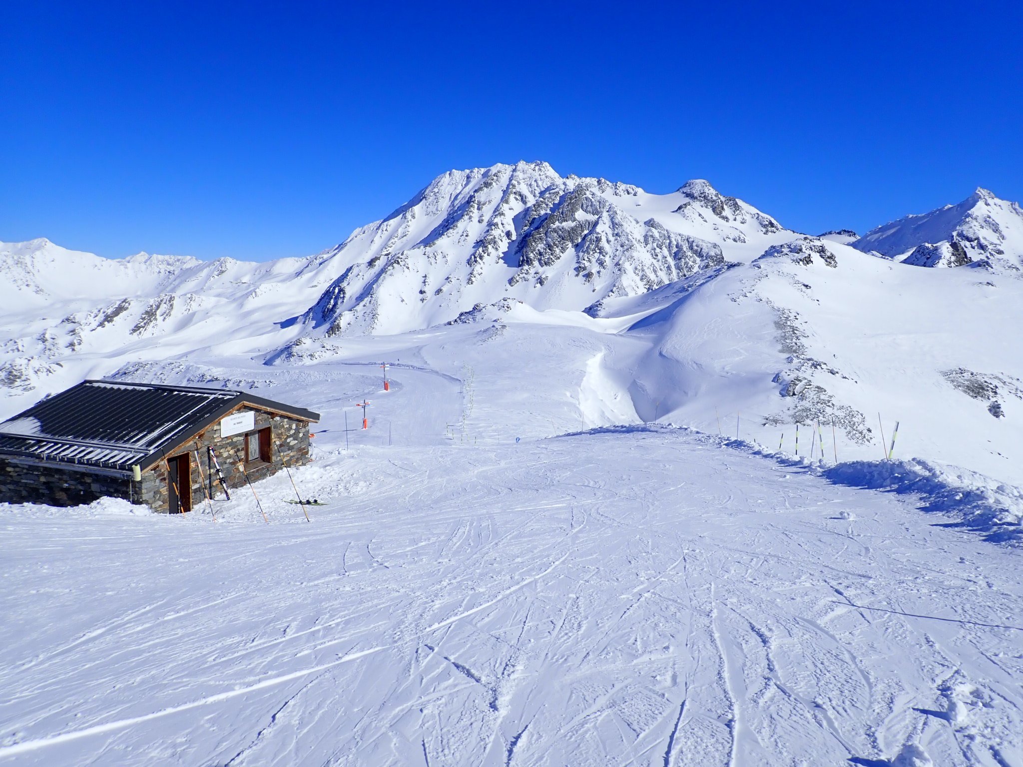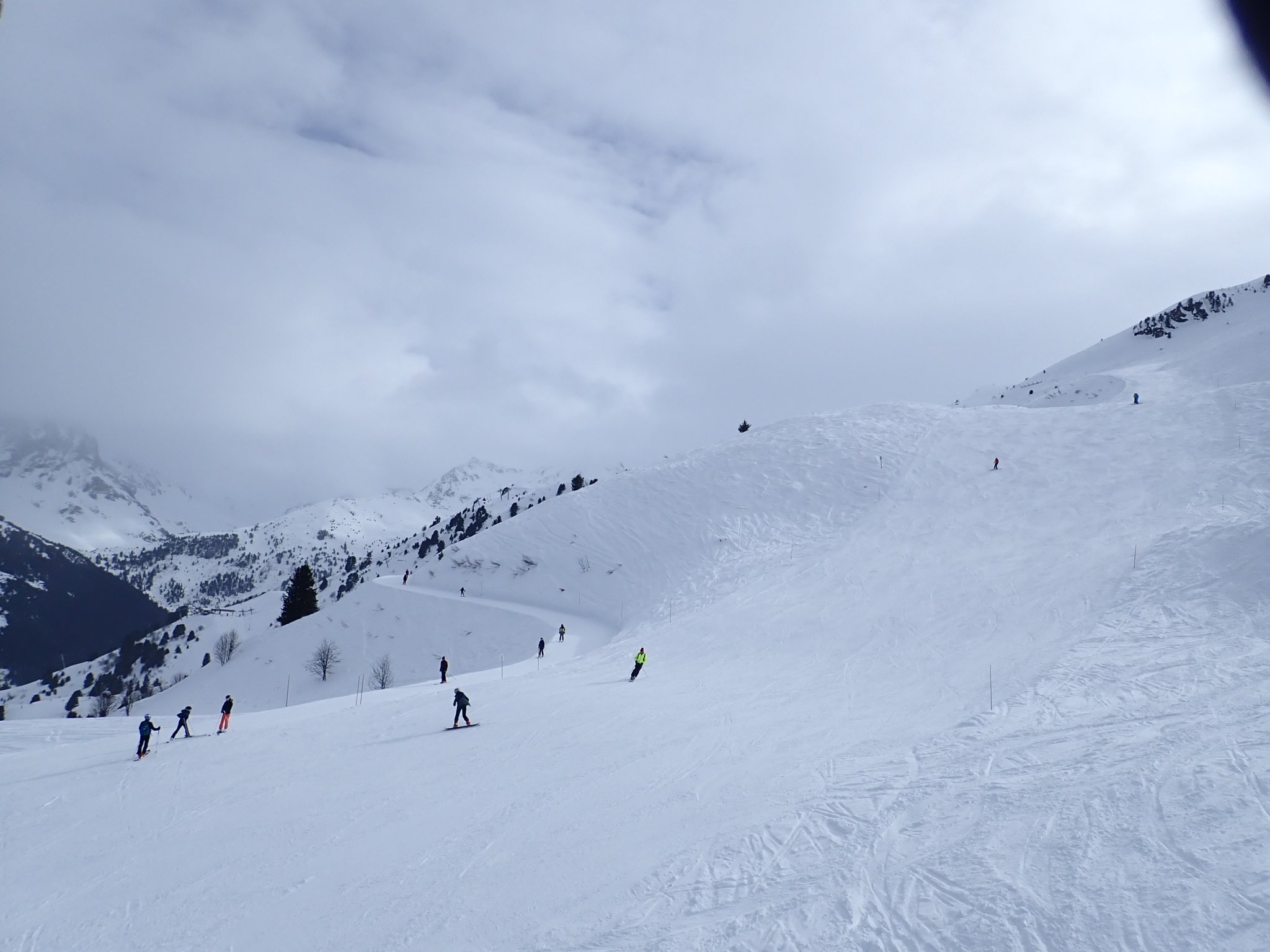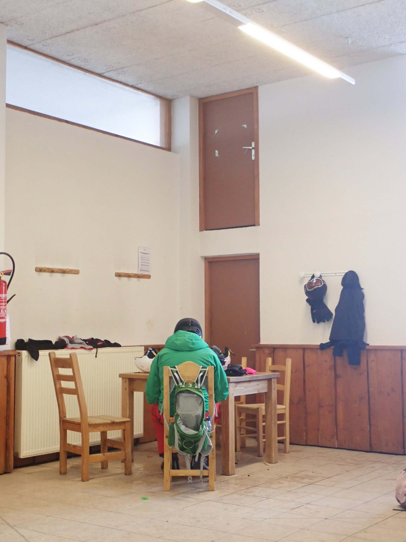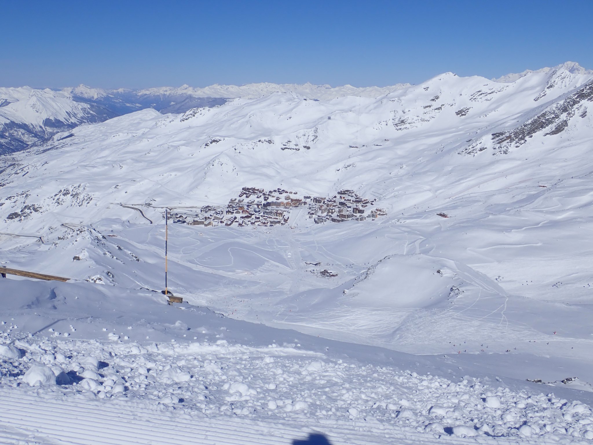 The weather got truly horrid in the afternoon, I guess this is a risk with a resort so high but you literally could not see from one piste marker to the next, you just guess and hope another pole of the correct colour appears. We could hear the distant sound of this cafe long before we could see it. We waited for a relatively clear spell with some coffee before heading down, deciding that there was no need to reduce the cost per crash further, and an early stop would be wise as the forecast for the next two days is good. Of course, the sun comes out the instant we reach the apartment, but there were still plenty of clouds so we stuck to the plan and sat on the balcony with a cup of coffee.