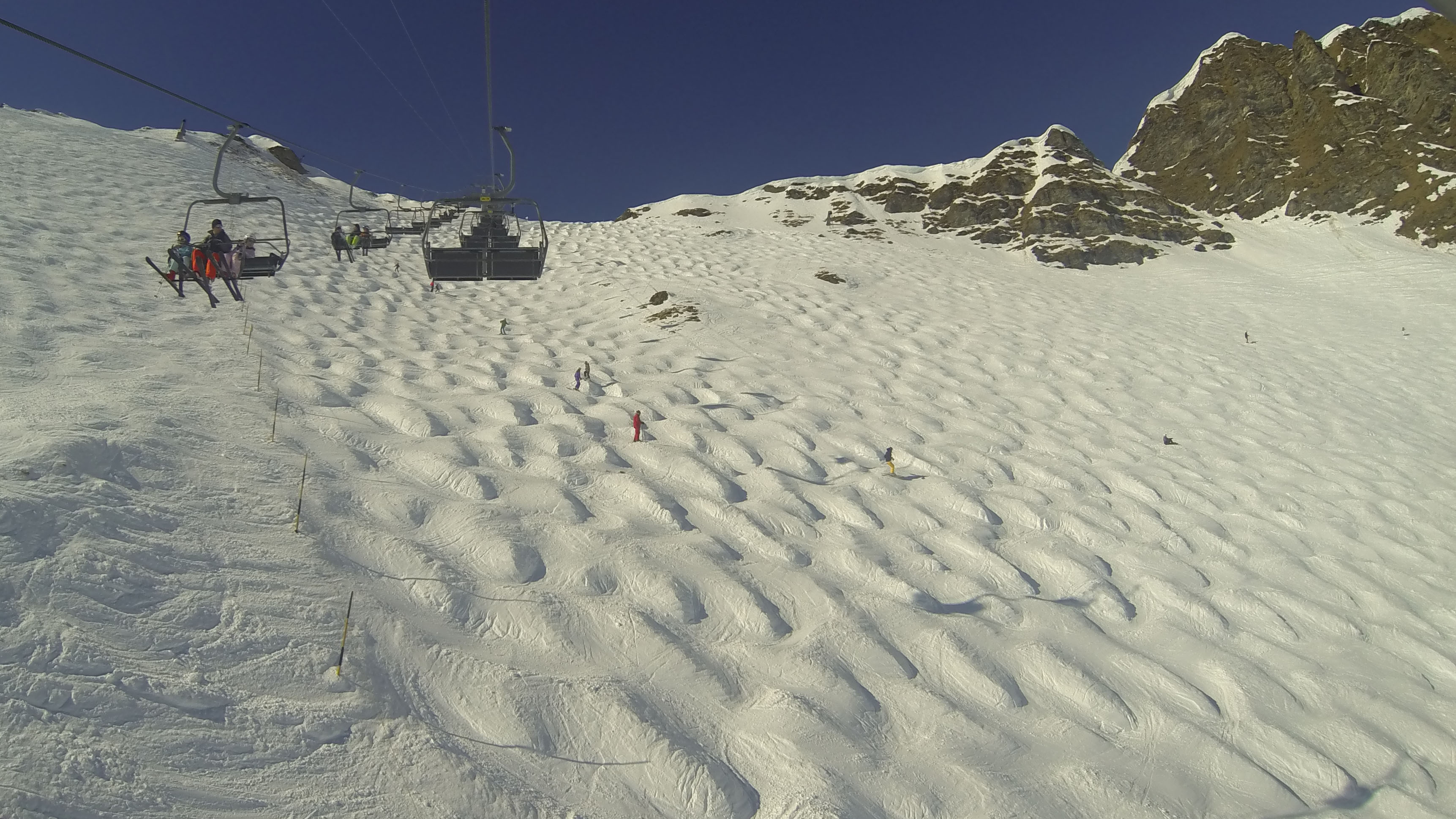 The next thing to brighten our day was a total failure of the airport check in baggage conveyor system. This presented us with a 2 hour wait with a few hundred other people in ski jackets while airport staff worked hard to marshal people into the right queues, prioritise people on earlier flights and manhandle hundreds of tons of luggage and skis. We made it to through security in time and headed for our gate quickly as instructed. We were not too concerned, these things happen after all.