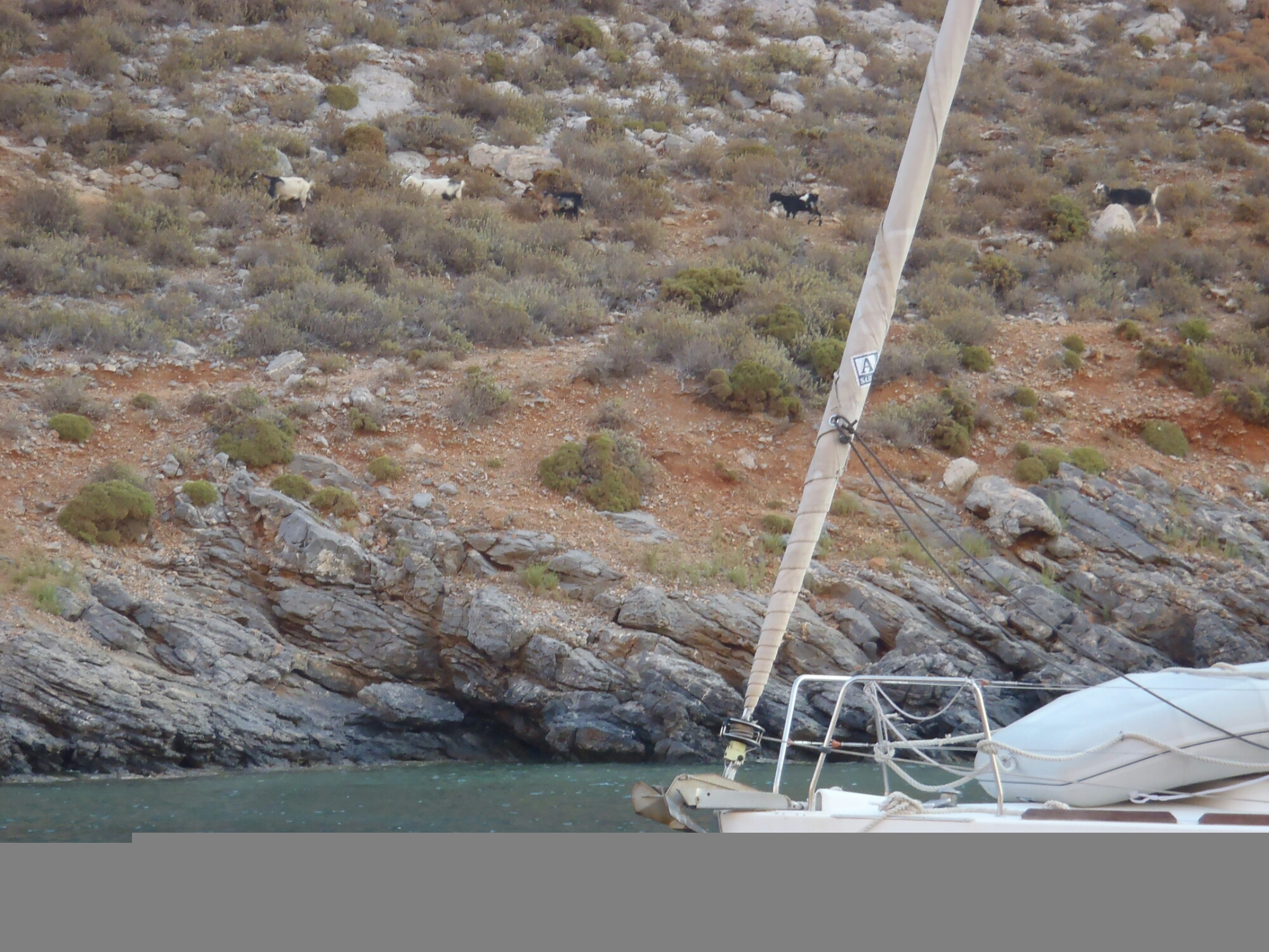 We were woken by the sound of goats, which is something of a first for a sailing holiday. There are a whole herd of them living on the side of the hill that forms the eastern half of this bay. It seemed that they gathered with someone who I assume would be called a goatherd, for reasons we could not figure out, then after a while all tramped back onto the open hillside.