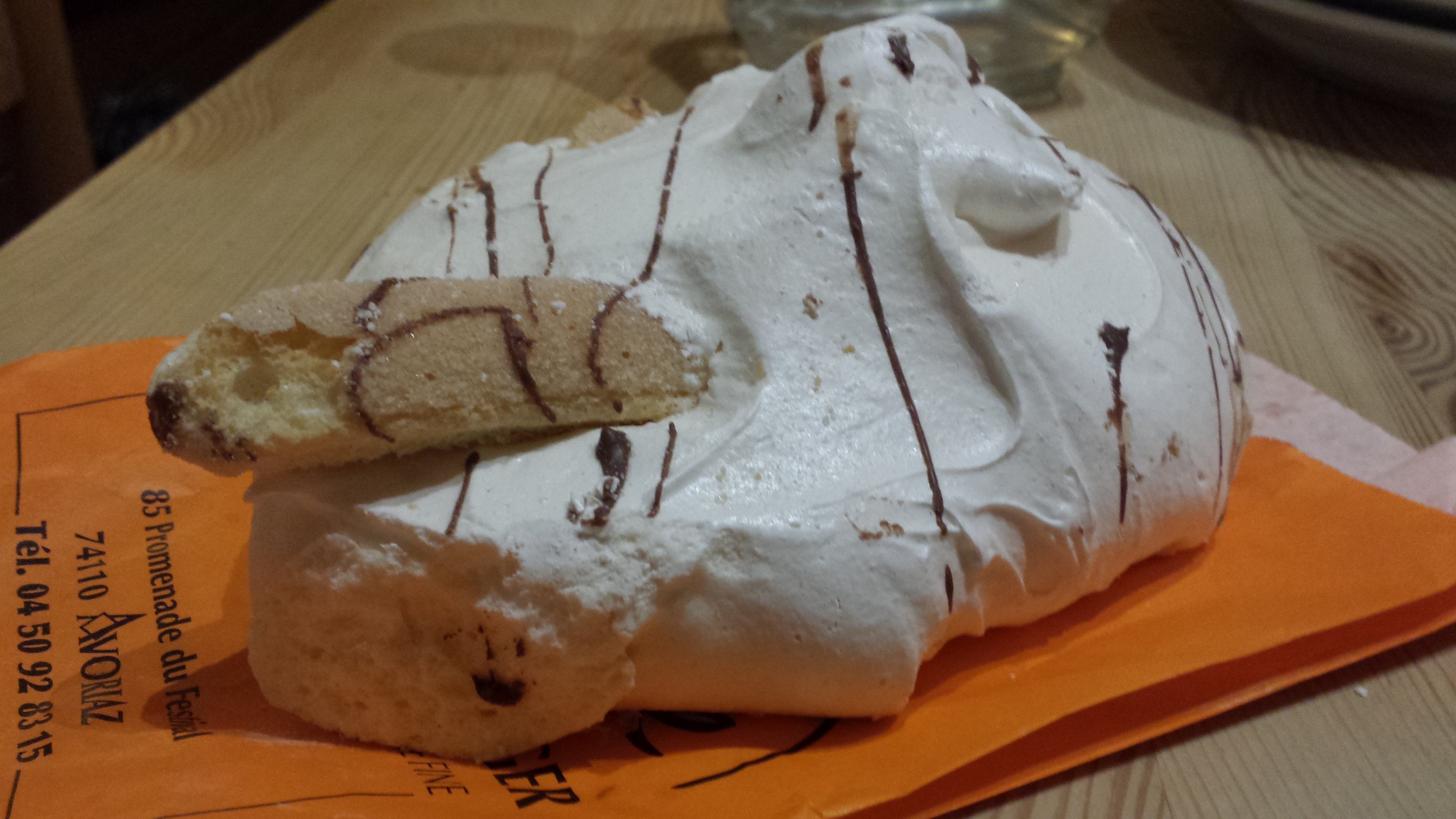 We eat in this evening, which meant we could buy desert from the bakery we get bread from every morning. They seem to specialise in meringues… This may take me a couple of days to eat, it is about 6 inches across….