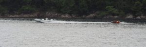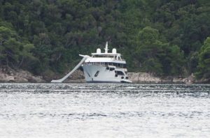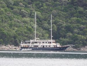 After another excellent dinner, some sampling of the local beers, and the interesting tender ride back to the boat in the dark, it seems that some of the wild life is moored near by….